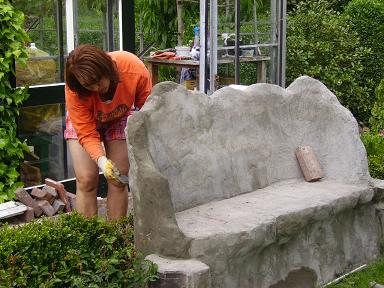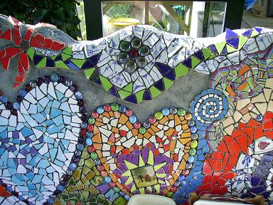 | 17 juni 2008 het begint ergens op te lijken, dankzij hulp bij het schuren van de vele mozaïekstukjes |