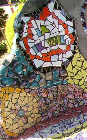 31 augustus 2009 Het mozaïekwerk is nu helemaal af dankzij mijn lieve zus! Als het droog is kan er gevoegd worden |